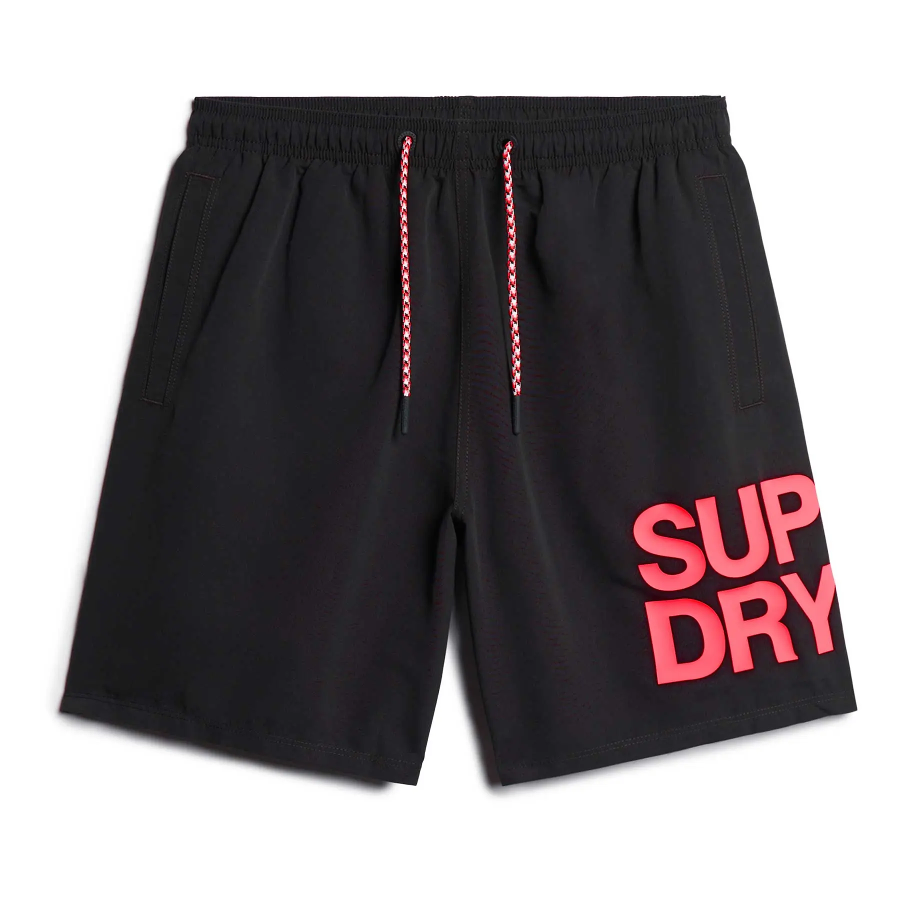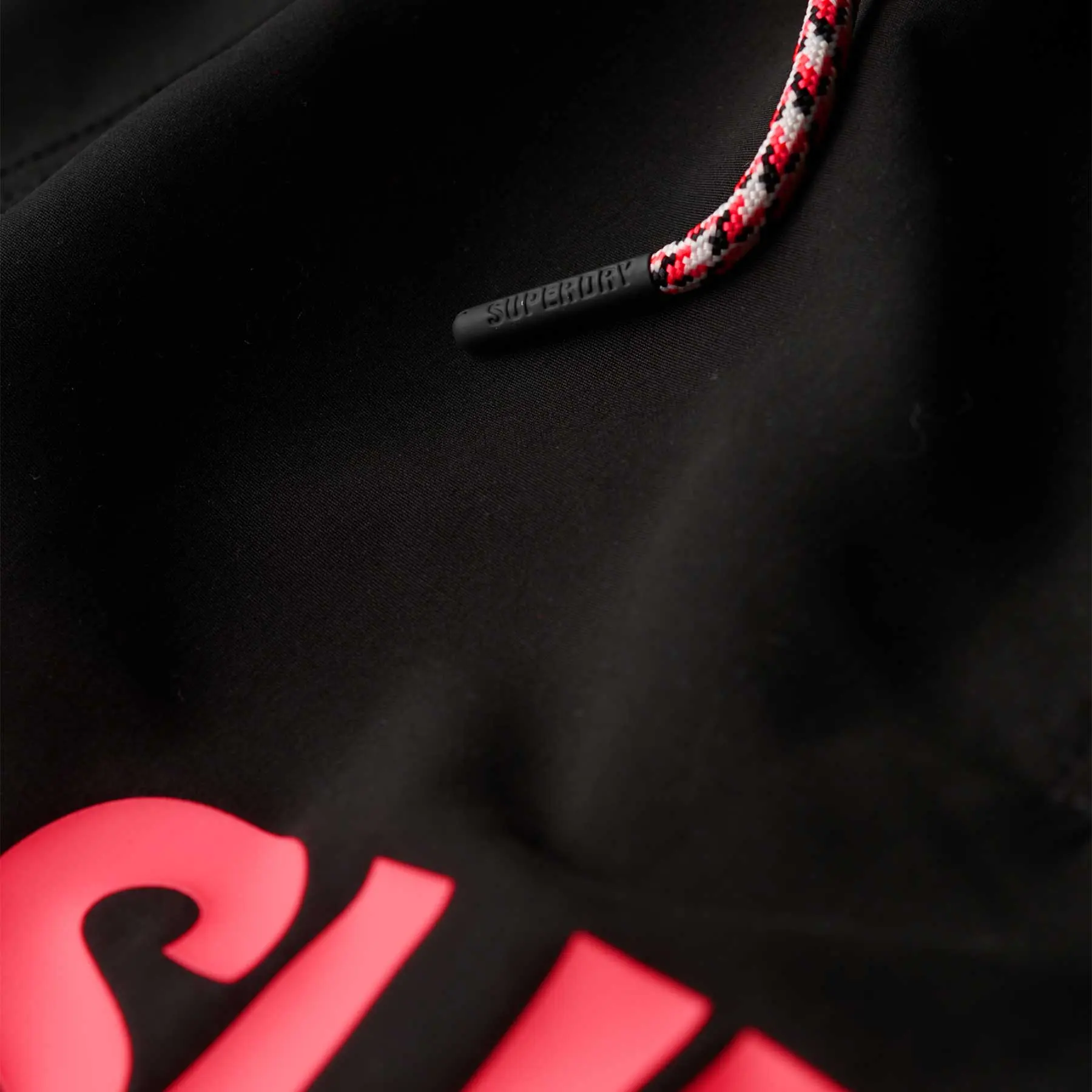 Μαγιό-boxer με την υπογραφή της Superdry σε μαύρο χρώμα με ροζ λογότυπο Superdry.