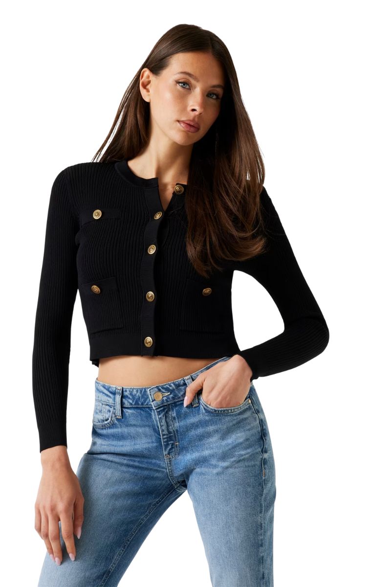 Guess Γυναικεία Πλεκτή Ζακέτα W5YR09Z0130-JBLK Μαύρο