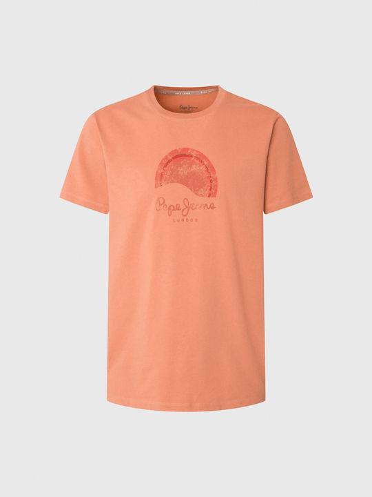 Ανδρικό T-shirt με κοντό μανίκι της εταιρίας Pepe Jeans σε πορτοκαλί χρώμα με στάμπα, για casual εμφανίσεις.