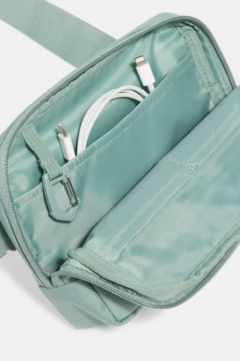 - Adjustable strap with buckle closure can be worn as a waist bag or a crossbody